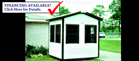 Guard Shack Return to Sheds Available in different sizes and colors, this unit is usually custom designed for each customer's individual needs. A variety of different sized doors and windows available upon request.